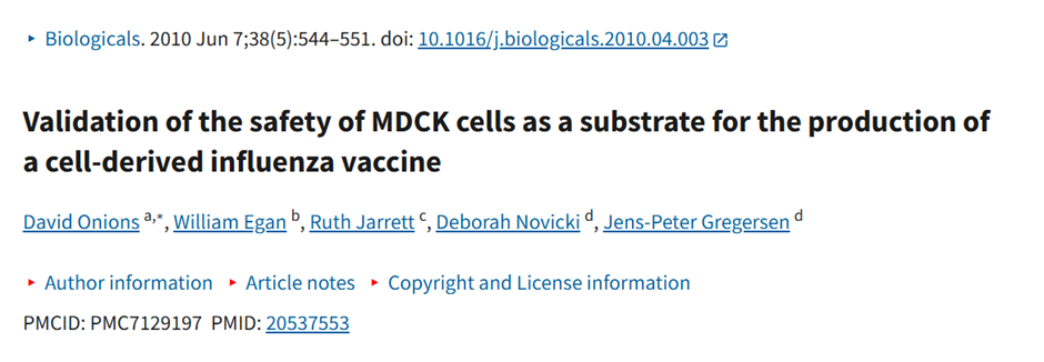 Yksi harkinnassa oleva lisäsubstraatti on solulinja nimeltä Madin-Darby canine kidney cells (MDCK), joka uutettiin terveen naarascockerspanielin munuaisista vuonna 1958. Solulinja on muunnettu jatkuvasti jakautuviksi soluiksi, joita kutsutaan ”immortalisoiduiksi soluiksi”. Jotkut MDCK-solujen variantit on kuvattu erittäin kasvaimia aiheuttaviksi, kun taas toiset eivät.